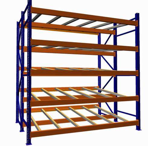 流利式货架,流利货架,使用流利条代替层板的货架,流利条的一端高一端低,可以使货物轻松滑动
