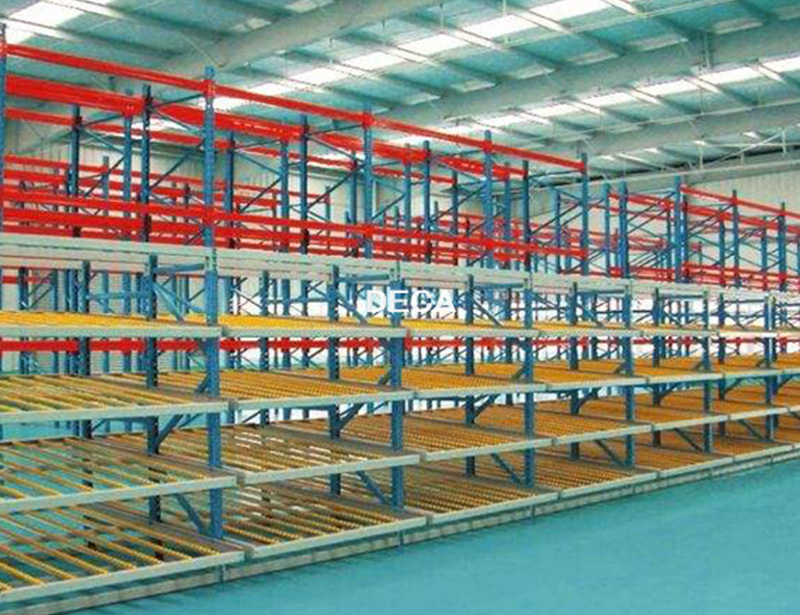 流利式货架适用于大量货物的短期储存和提货。流利式货架通常配有纸箱、零件箱、周转箱等滑动容器。流利式货架的倾斜度取决于货架的深度、集装箱的大小和货物的重量,通常为5%~10%。一个滚道可安装3-5根流畅钢筋,在深度方向每隔0.7m安装一根支撑梁,以增加流畅钢筋的刚度。