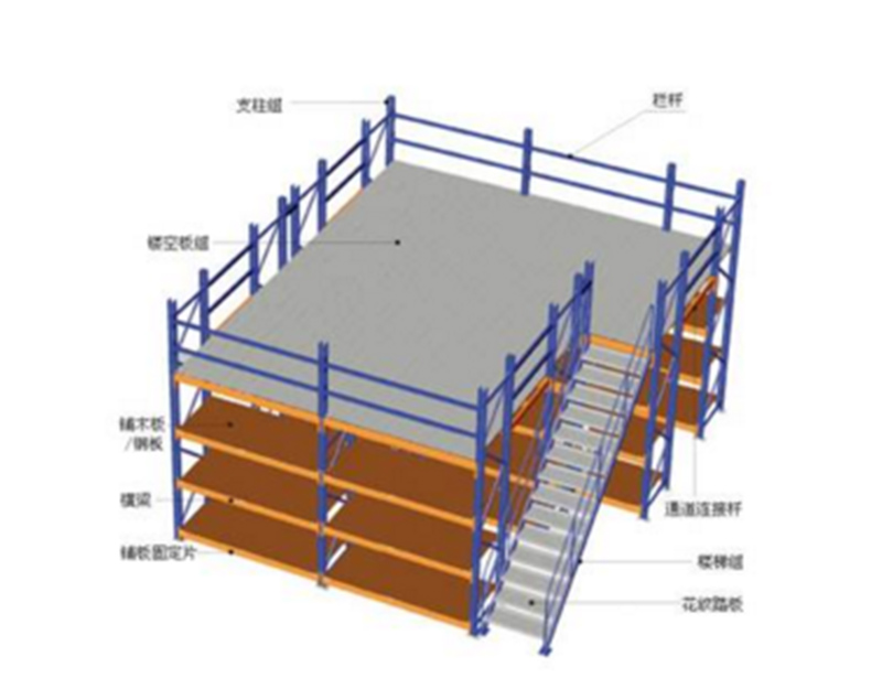 阁楼货架,阁楼平台,带有楼梯和楼板,支持定制,提高仓库利用空间